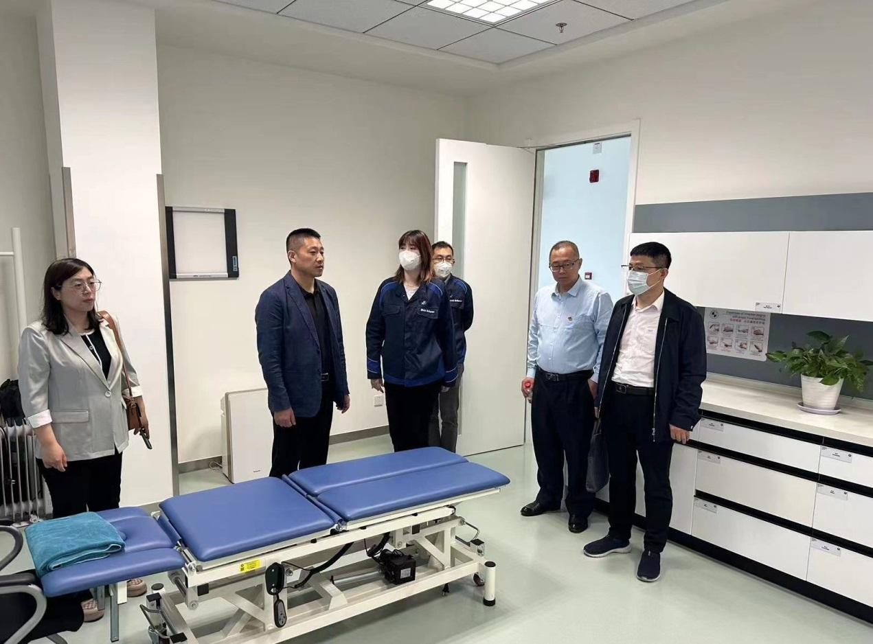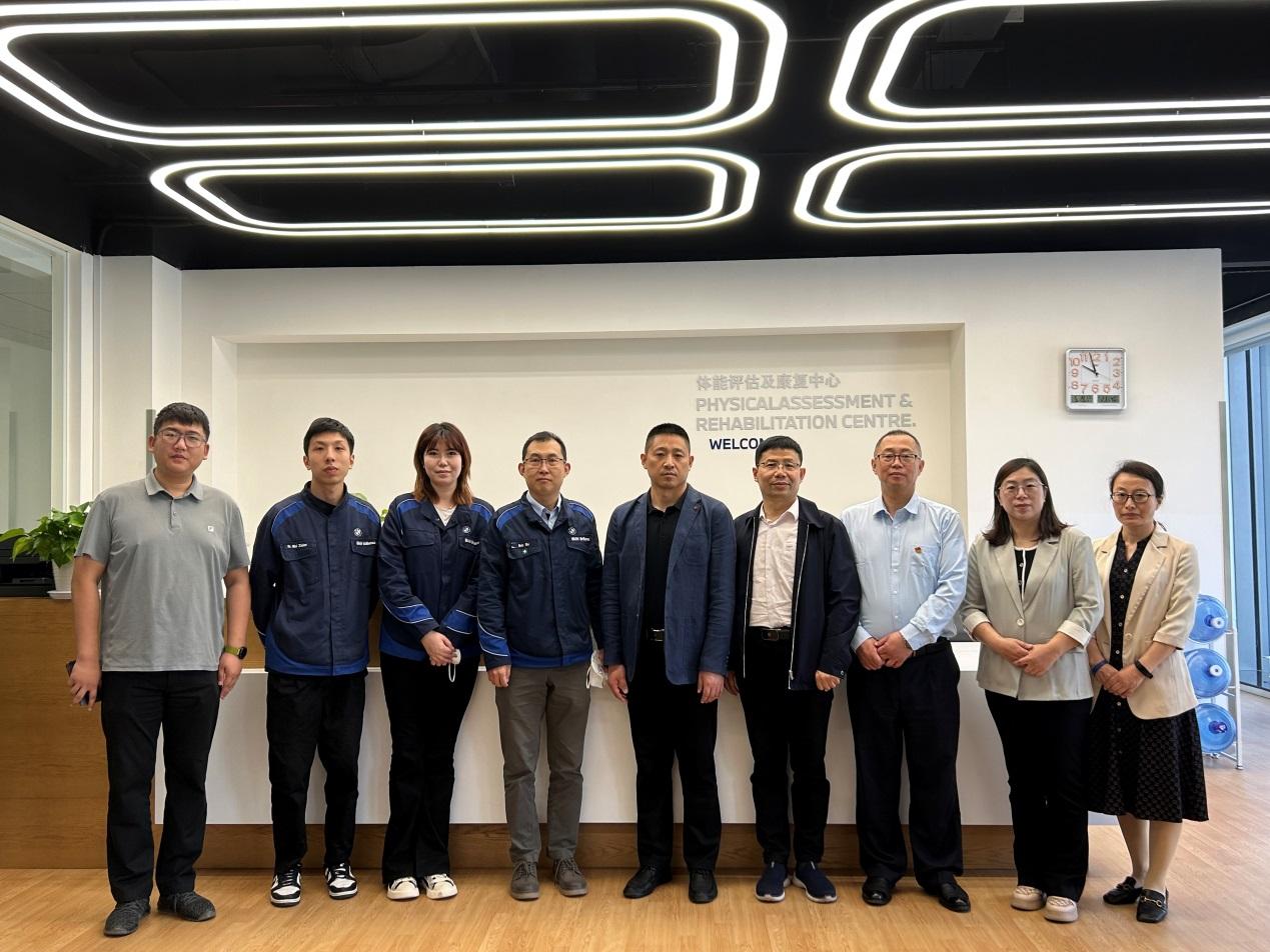为全面落实学校访企拓岗促就业有关要求,使学习贯彻习近平新时代中国特色社会主义思想主题教育成果落地生根,5月19日,beat365亚洲版官网组织有关人员,到宝马沈阳里达(Lydia)工厂走访调研。beat365亚洲版官网党总支书记王立东、院长张新安、副院长赵洪朋、副院长高海宁参与调研,并与宝马大中华区健康管理部BBH-7谷经理,康复师董佳逸、隗子贤进行会谈。