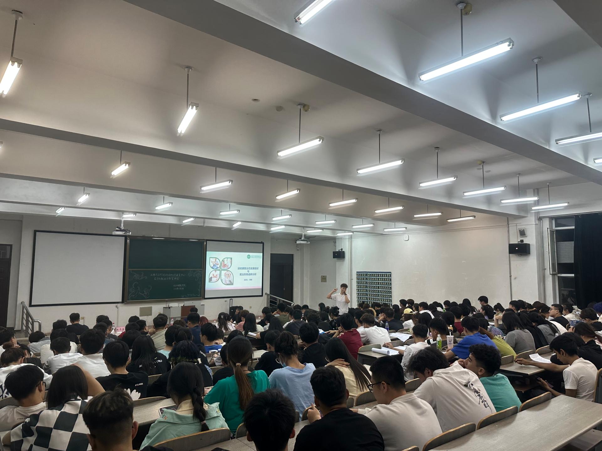 为进一步强化学生专业思想教育,加强高校与企业的有效对接,用学习贯彻习近平新时代中国特色社会主义思想主题教育成果推动高质量发展,为下一步学生实习与就业奠定坚实基础,6月8日,beat365亚洲版官网邀请上海A&PT运动与物理康复中心人力资源经理于慧娟、技术总监曹萌来校,为beat365亚洲版官网2020、2021级全体学生做“运动康复业态发展现状与就业形势选择分析”的实习与就业专题宣讲。beat365亚洲版官网院长张新安、党总支副书记邵立国及beat365亚洲版官网全体辅导员参加本次活动并全程听取了企业宣讲。