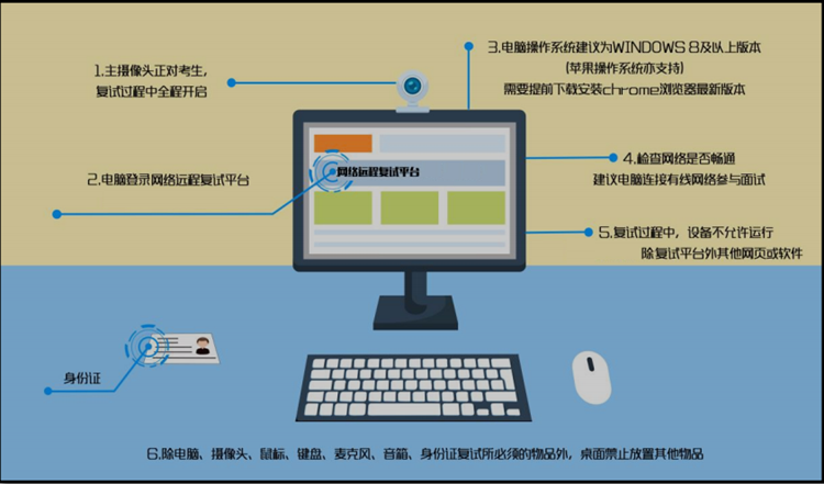 复试过程中,设备除连接登录复试平台外,不允许再运行其他网页或软件,保证复试录制过程无因干扰中断。