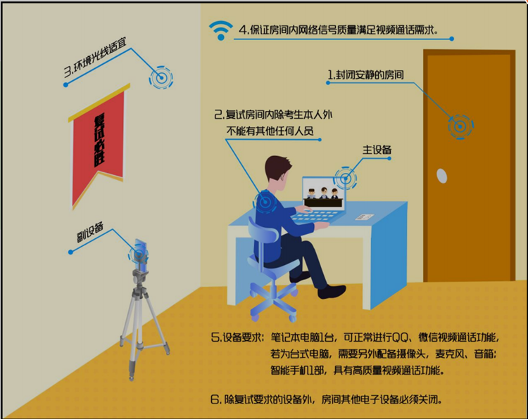 (3)除复试要求的设备外,房间其他电子设备必须关闭。