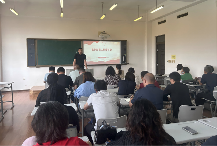 党总支书记王立东对二级学院有关工作进展作情况介绍,带领全体教职工集体学习学校及二级学院意识形态工作相关规定,并以“高校教师意识形态工作中的原则与方法”为主题,为全体教职工系统讲解了意识形态工作中的基本原则、注意事项与基本方法。他强调,广大教师要把牢政治方向,坚守底线,守好主阵地;加强课程思政,对待学生要尊重引导并重;规范网络行为,积极传播正能量,共同维护意识形态领域安全稳定。